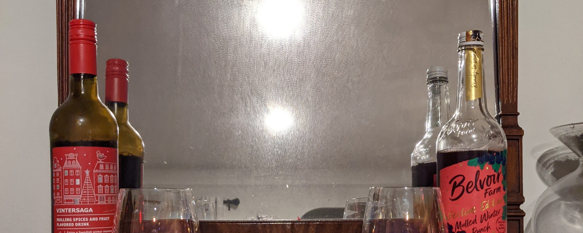 It’s a holiday head-to-head! Most of my sober and sober curious friends are starting to chat about what alternatives they will be bringing to holiday gatherings, so I figured it would be a good time to put some mulled wines to the test. I picked up a couple of bottles of IKEA Vintersaga for $3.99 each last week. It’s a mix of mulling spices and juices (grape, apple, cranberry, lemon). Then I saw Belvoir Farms’ Mulled Winter Punch online and love their products, so I grabbed a bottle for $16.00. The mix of juices in this one are grape, elderberry, blackcurrant and orange.